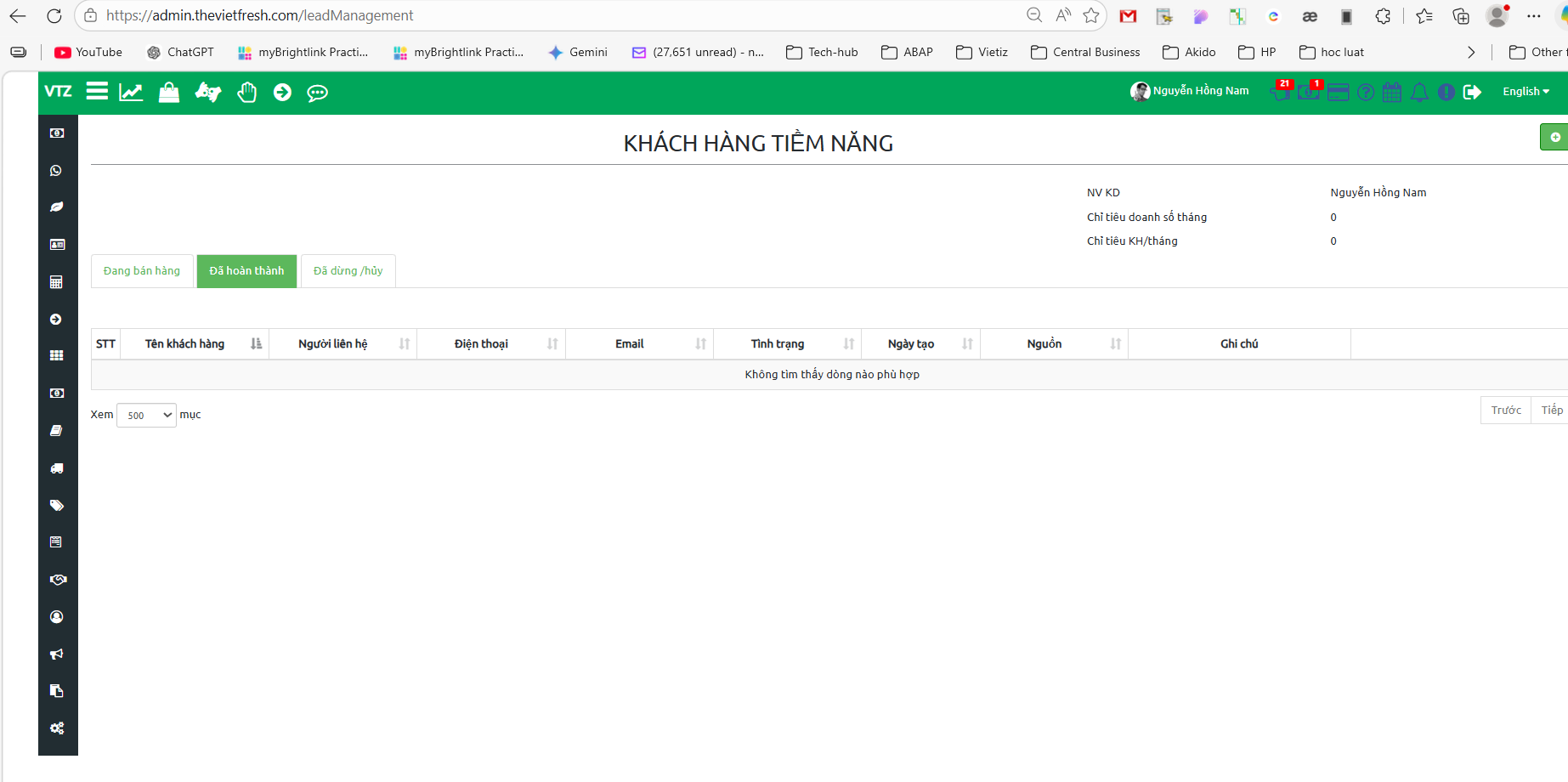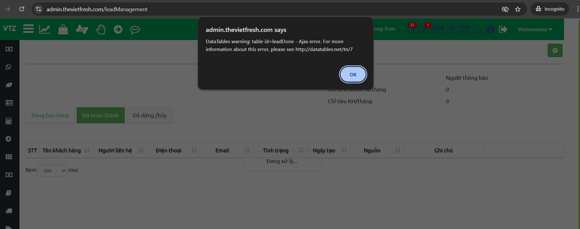 Màn hình khách hàng tiểm năng bị lỗi như hình đính kèm.